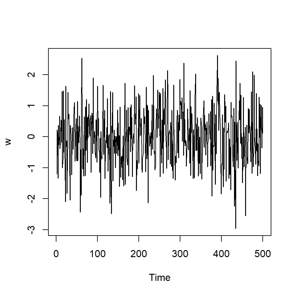 Simulación de una colección de \(w_t \sim N(0,1)\) con \(T=500\).