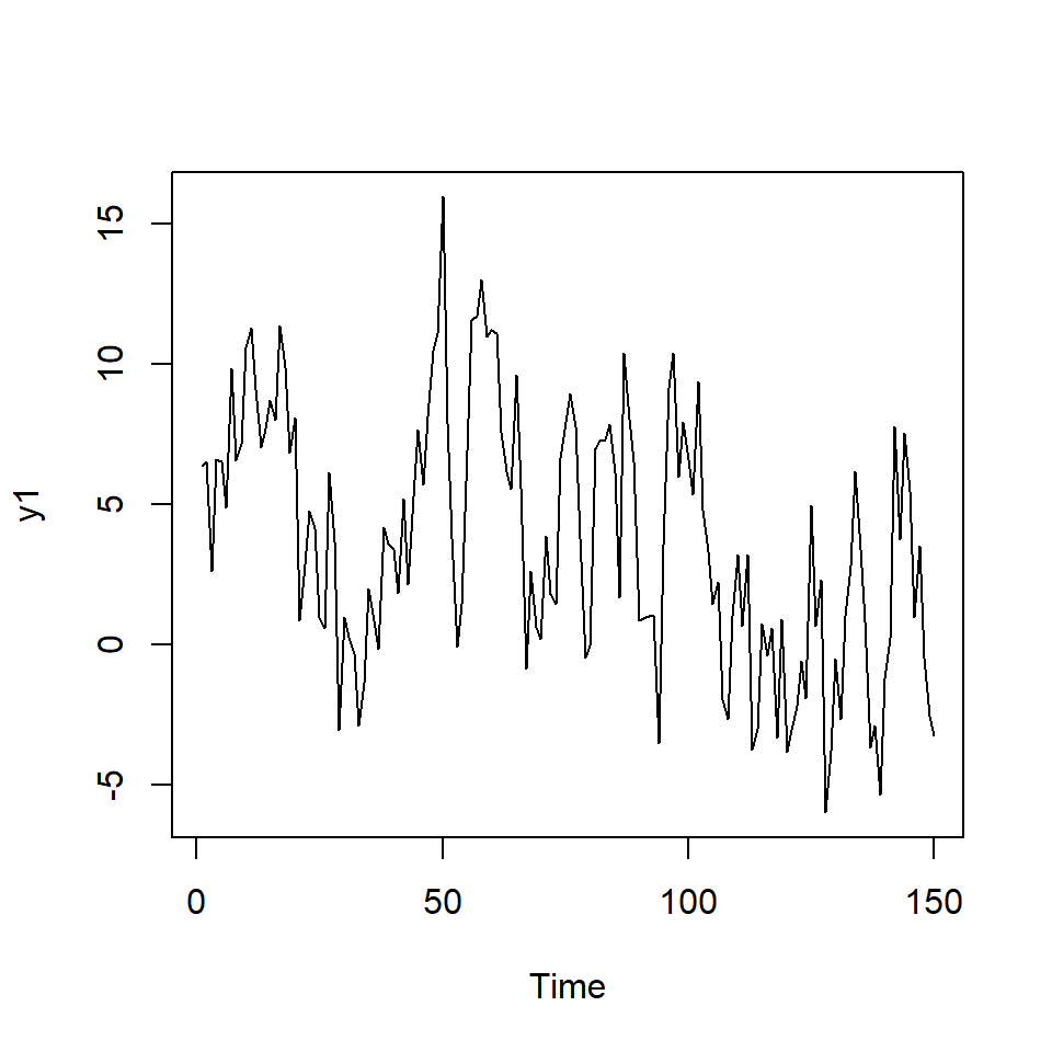 y1 <- arima.sim(n = 150, model = list(order = c(1,0,0),ar = c(0.8)),sd=3,rand.gen= rnorm) + m