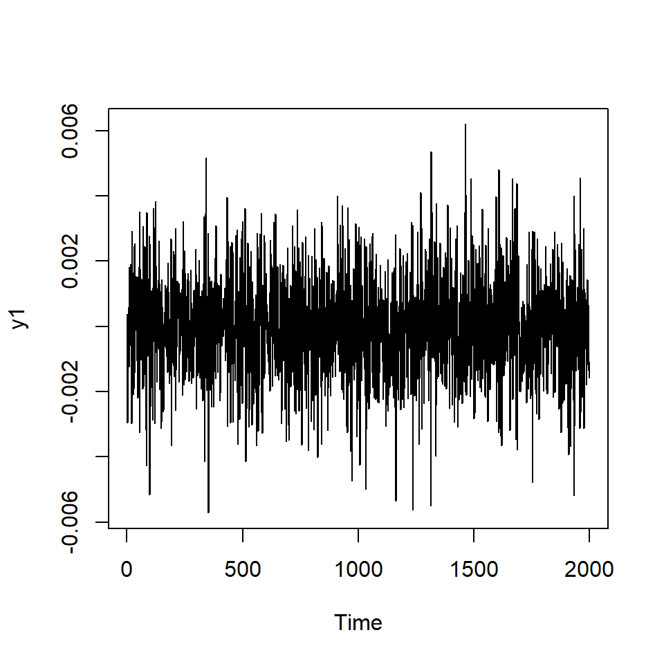 Por lo tanto, \(\gamma_X(k)=0, k \geq 1\). En otras palabras, \(X_t\) es una secuencia de variables aleatorias no correlacionadas (ruido blanco) con variancia \(\frac{\alpha_0}{1-\alpha_1}\).