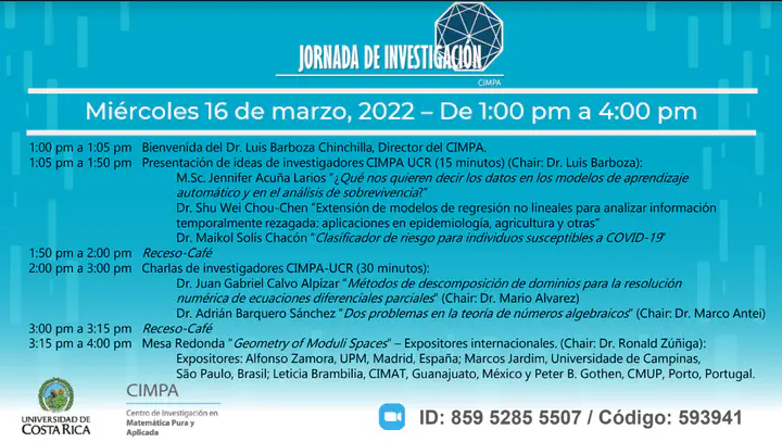 Extensión de modelos de regresión no lineales para analizar información temporalmente rezagada. Aplicaciones en epidemiología, agricultura y otras. mar. 16, 2022 Vídeo Jornada de Investigación. CIMPA, UCR. Shu Wei Chou Chen Profesor Mis intereses de investigación incluyen los métodos estadísticos, el análisis de series temporales y el análisis espacio-temporal.