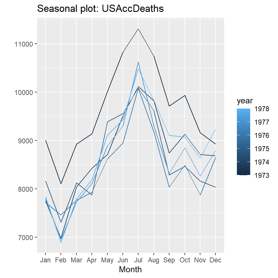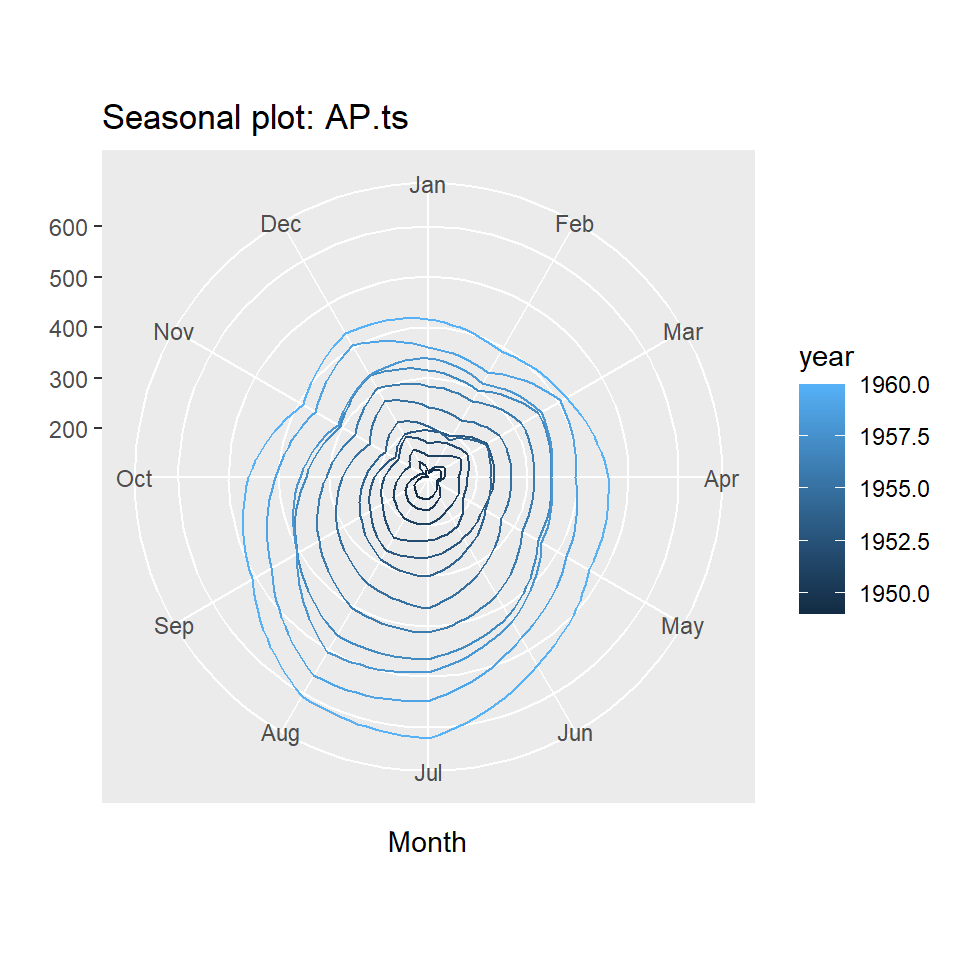 cycle(AP.ts) #verificar el ciclo de cada observación Jan Feb Mar Apr May Jun Jul Aug Sep Oct Nov Dec
