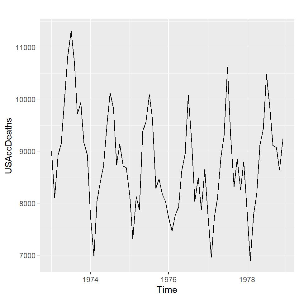 str(AirPassengers) Time-Series [1:144] from 1949 to 1961: 112 118 132 129 121 135 148 148 136 119 ...