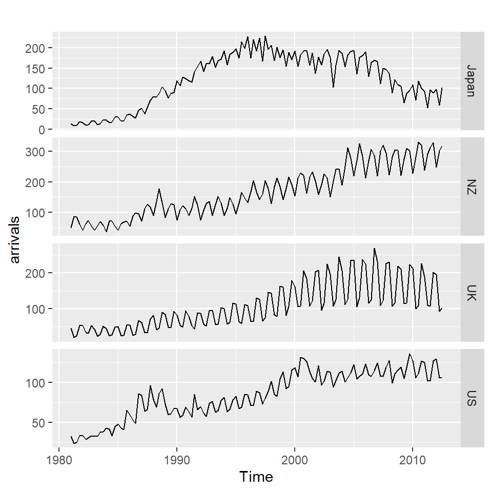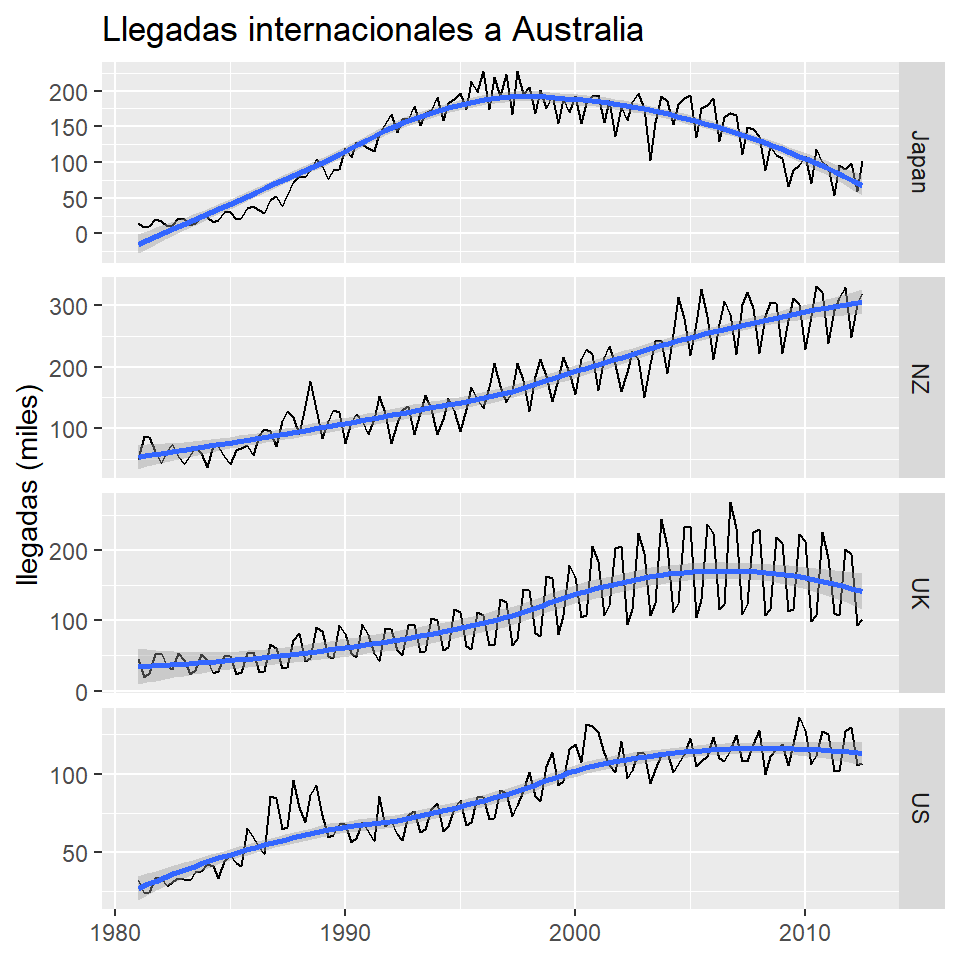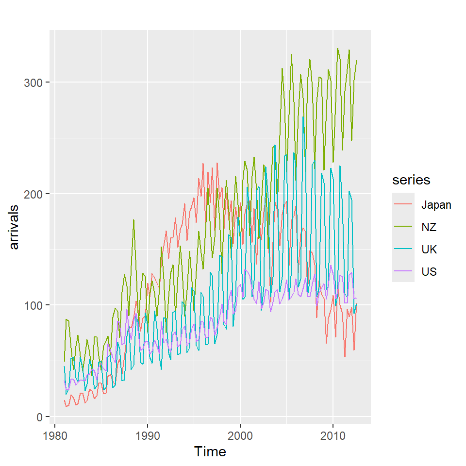 Existen una variedad de formas de definir objetos de series temporales en R y distintos paquetes para graficar.