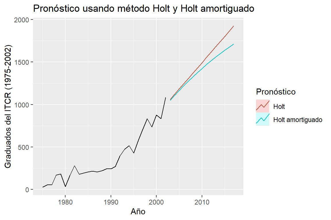 Ecuación del pronóstico: \(~~~~~P_{t+m}=l_t+ (\phi+\phi^2+...+\phi^m)~b_t\)