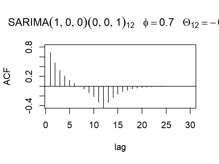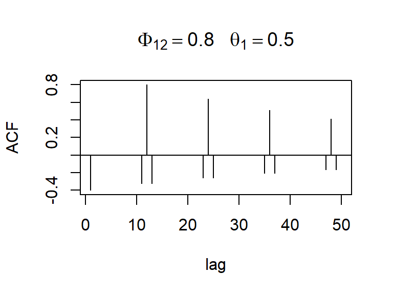 \[Z_t=0.8 Z_{t−12}+a_t- 0.5 a_{t−1}\]
