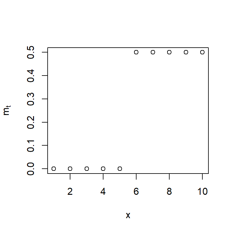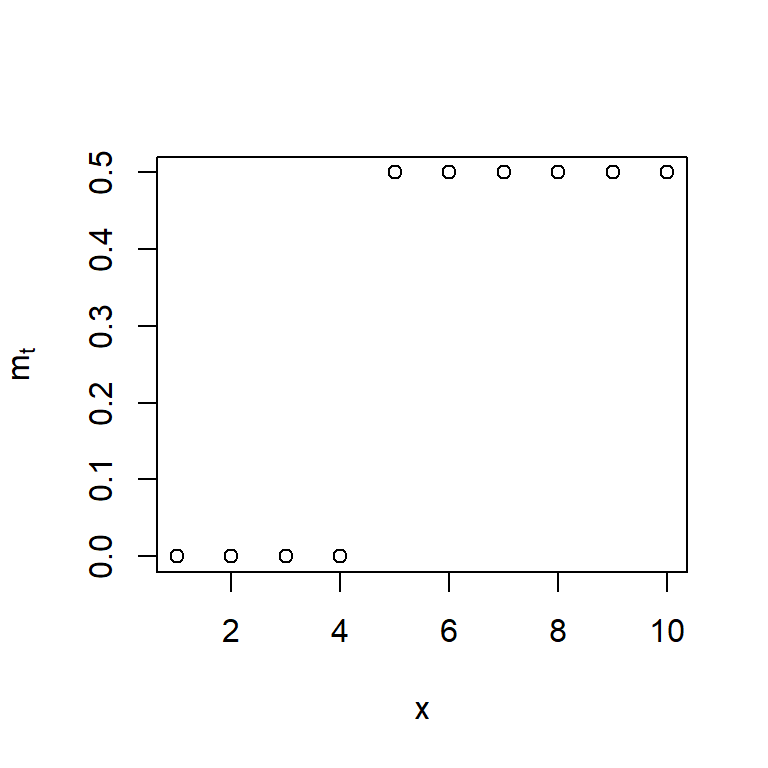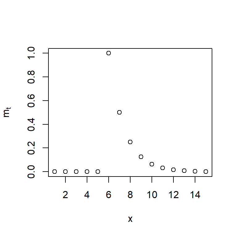 \[m_t = \delta m_{t-1} + \omega P_{t-1}^{(T)},\] con la condición inicial de \(m_0=0\).