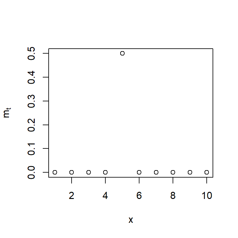 donde \(P_t^{(T)} = S_t^{(T)} - S_{t-1}^{(T)}\) es una función de impulso. \[P_t^{(T)} = \begin{cases} 1, & t = T, \\ 0, & t \neq T. \end{cases}\]